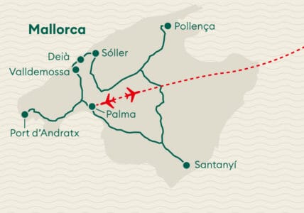 Das malerische Bergdorf liegt im Nordwesten Mallorcas und ist bekannt für seine historische Architektur und seine Lage in den Tramuntana-Bergen. Das Königliche Kartäuserkloster, La Cartuja, ist ein bedeutendes Wahrzeichen des Dorfes, in dem Chopin und George Sand eine Zeit lang lebten. Das Kloster beherbergt heute ein kleines Museum. Die Strassen von Valldemossa sind mit Geschäften, Cafés und Restaurants gesäumt. Der zentrale Platz, Plaça de la Cartoixa, ist ein beliebter Ort für Besucher. Die Umgebung bietet Wanderwege und Aussichtspunkte mit Blick auf die Berge und das Mittelmeer, ideal für Naturfreunde. Valldemossa ist ein ruhiger Ort mit einer Mischung aus Kultur und Geschichte, attraktiv für Kunstinteressierte und Naturliebhaber.